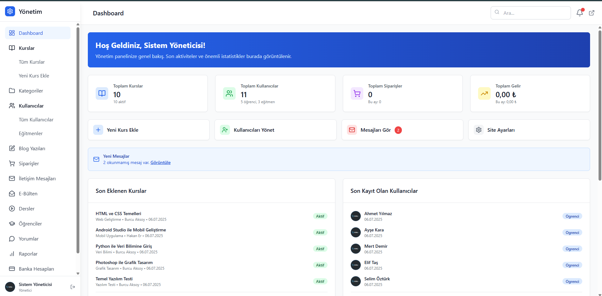 ✅ Öğrenci ve eğitmen panelleri