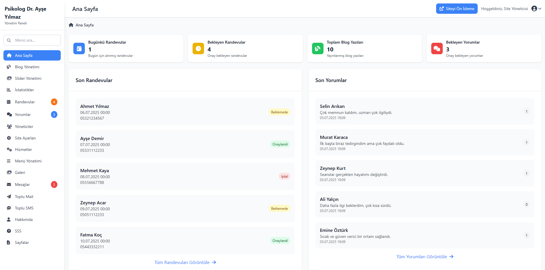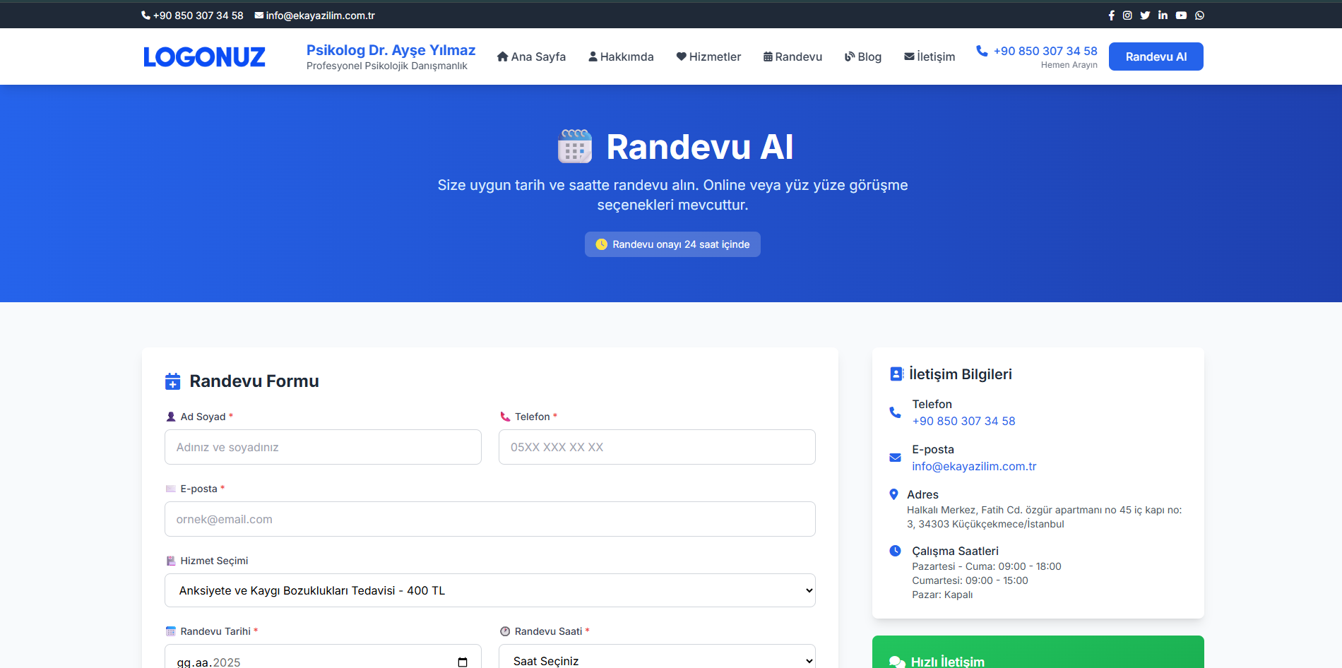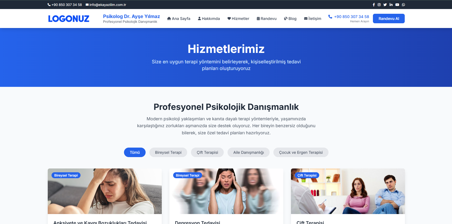 Web sitenizi profesyonel bir görünüme kavuşturun, randevu alın, içerik yönetin ve SEO performansınızı artırın!