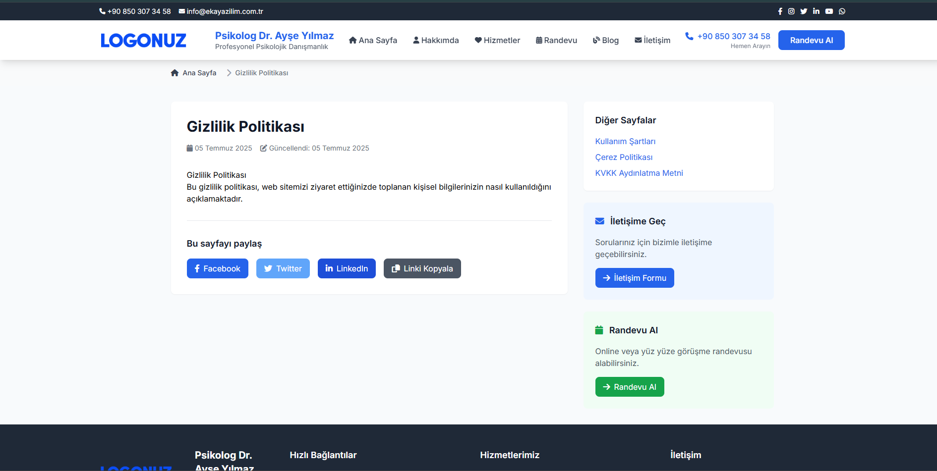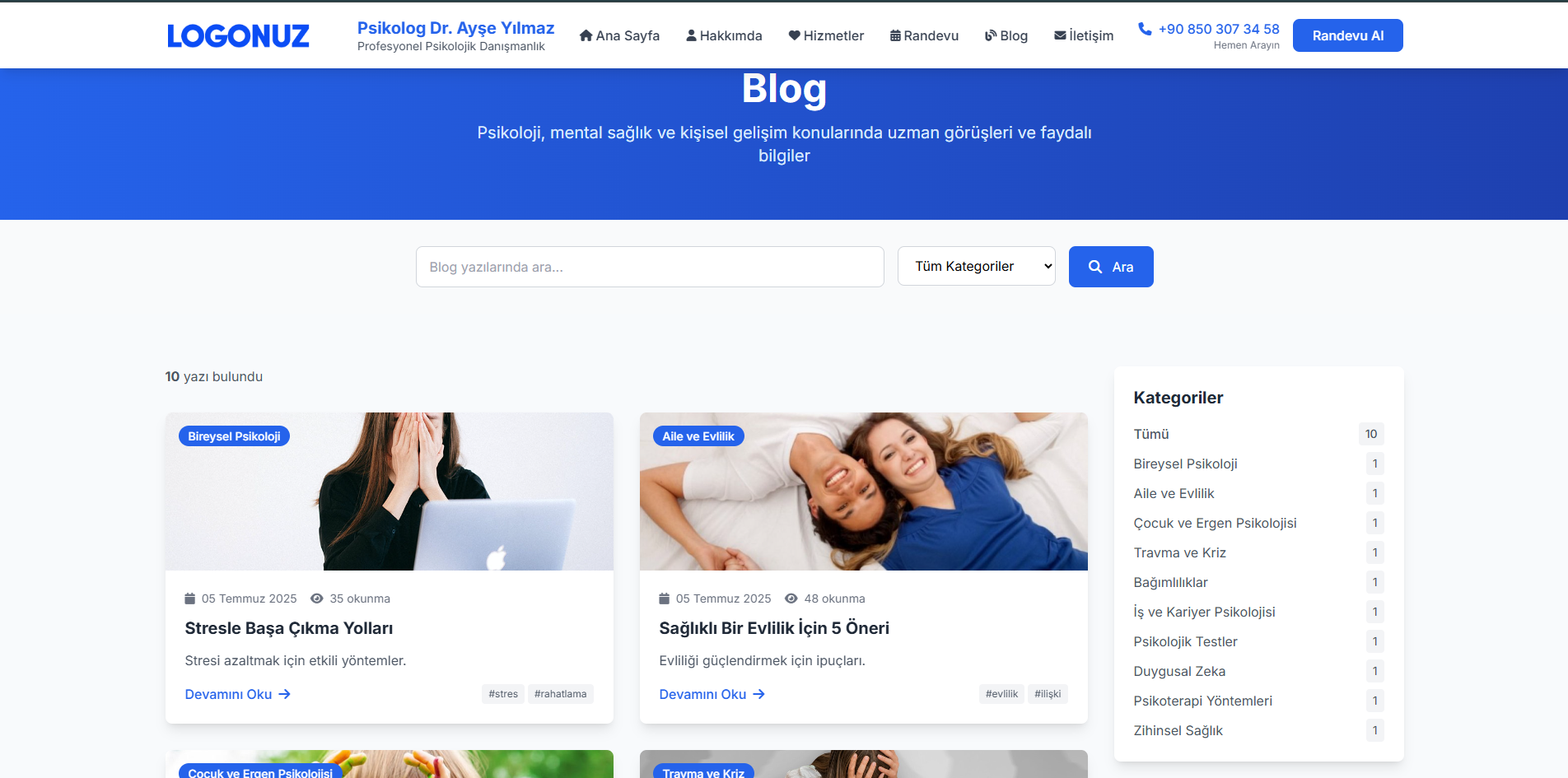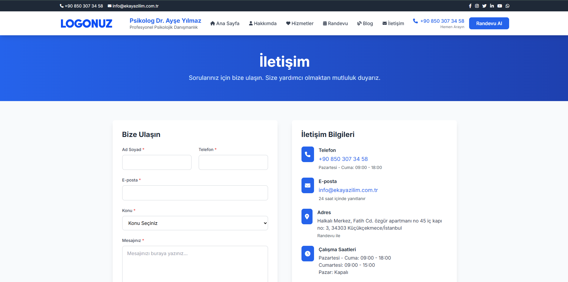 Web sitenizi profesyonel bir görünüme kavuşturun, randevu alın, içerik yönetin ve SEO performansınızı artırın!