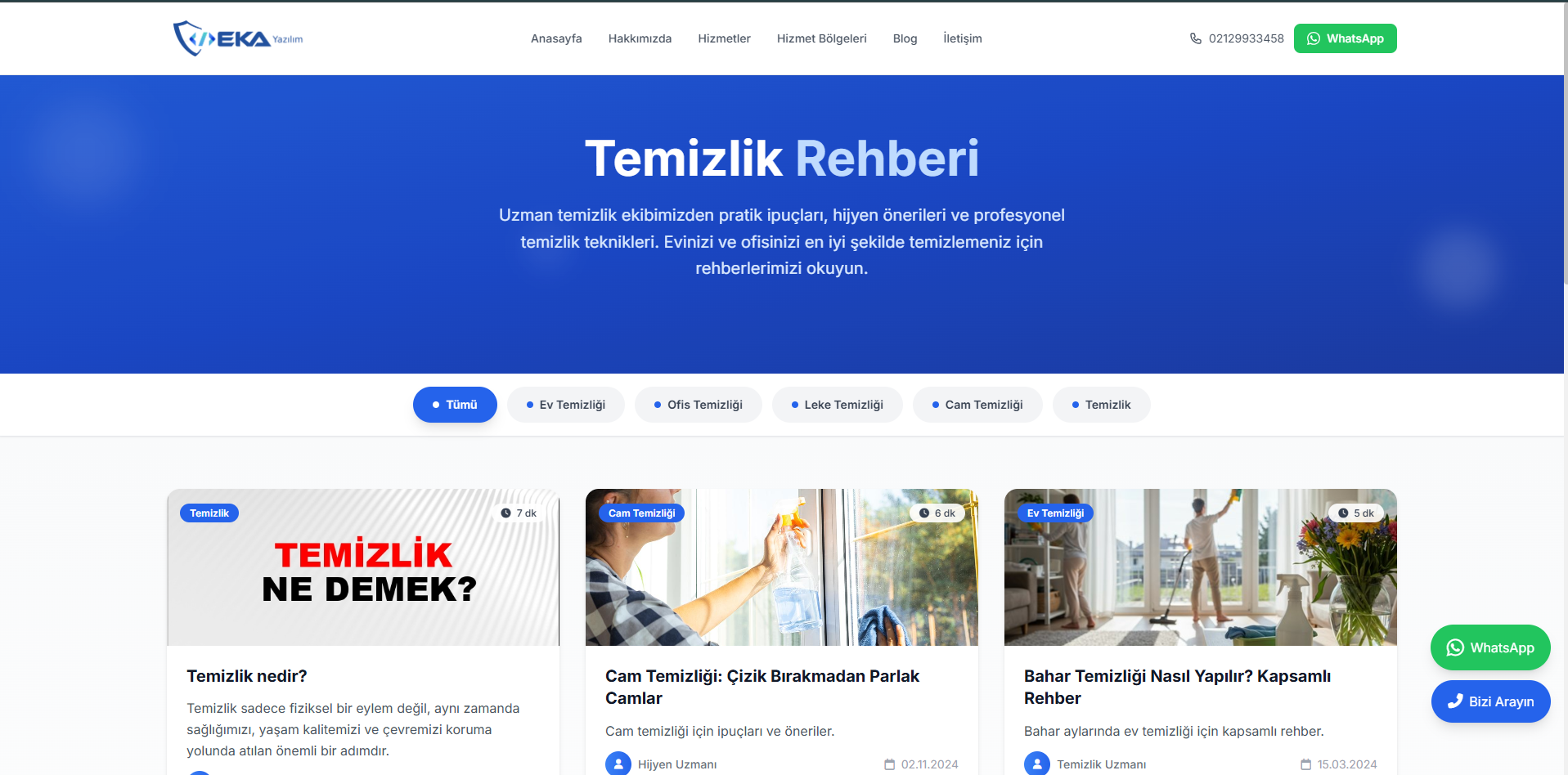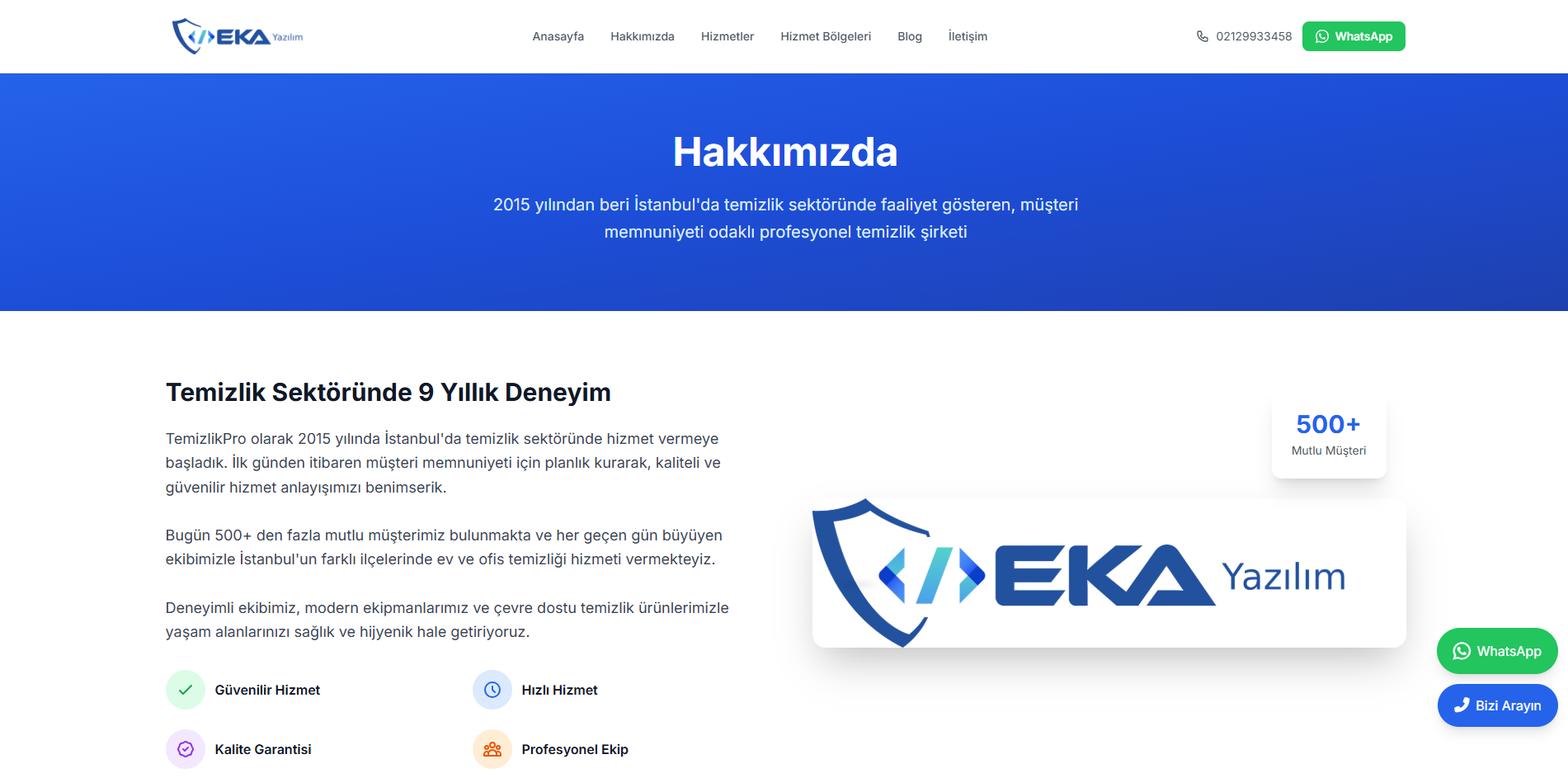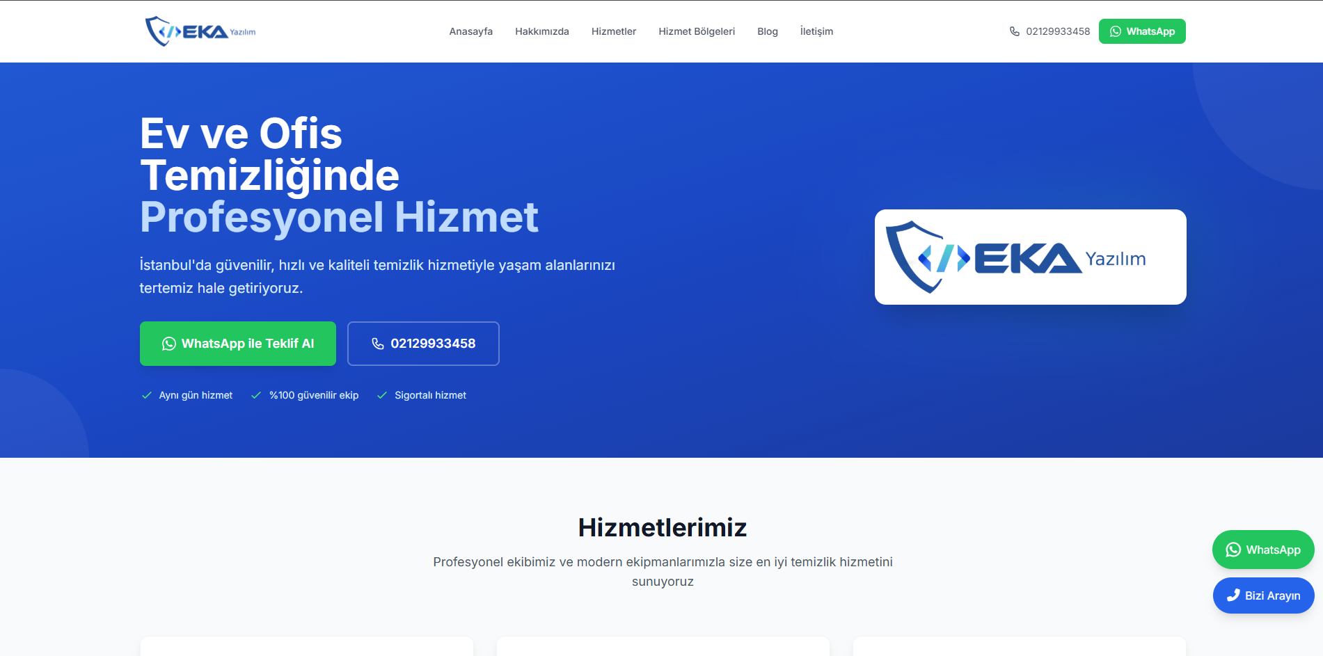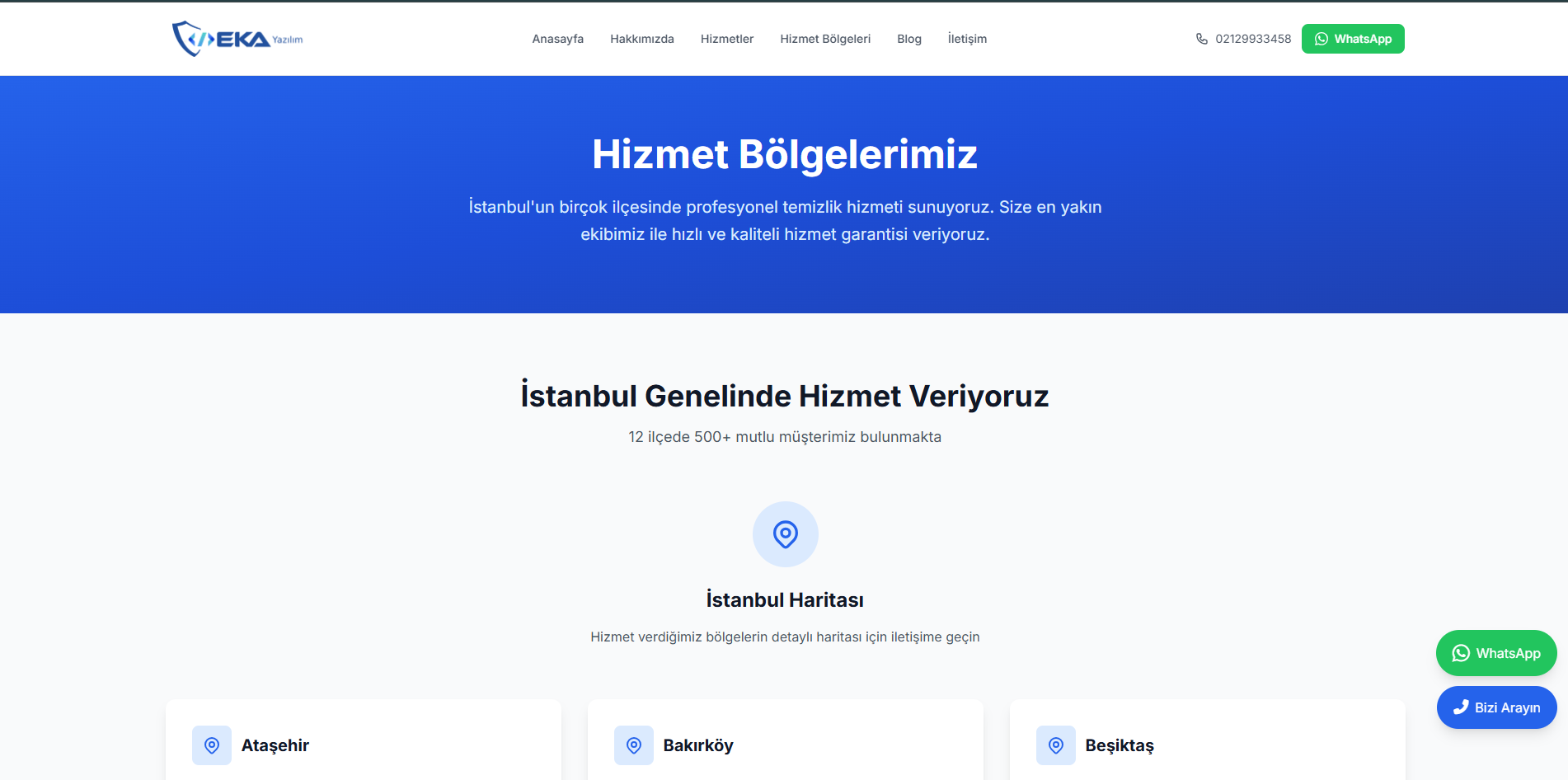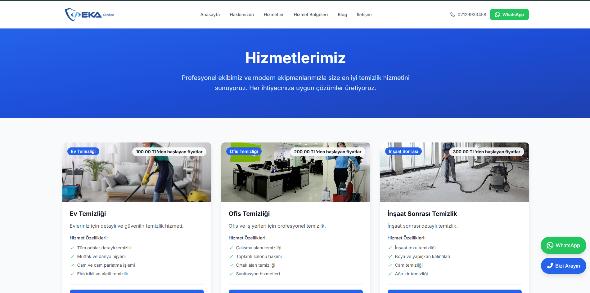Temizlik sektörüne özel hazırlanan bu sistem; müşteri yönetimi, hizmet tanımlama, SEO, harita desteği ve içerik üretimi gibi tüm ihtiyaçlarınızı tek panelde birleştiriyor.