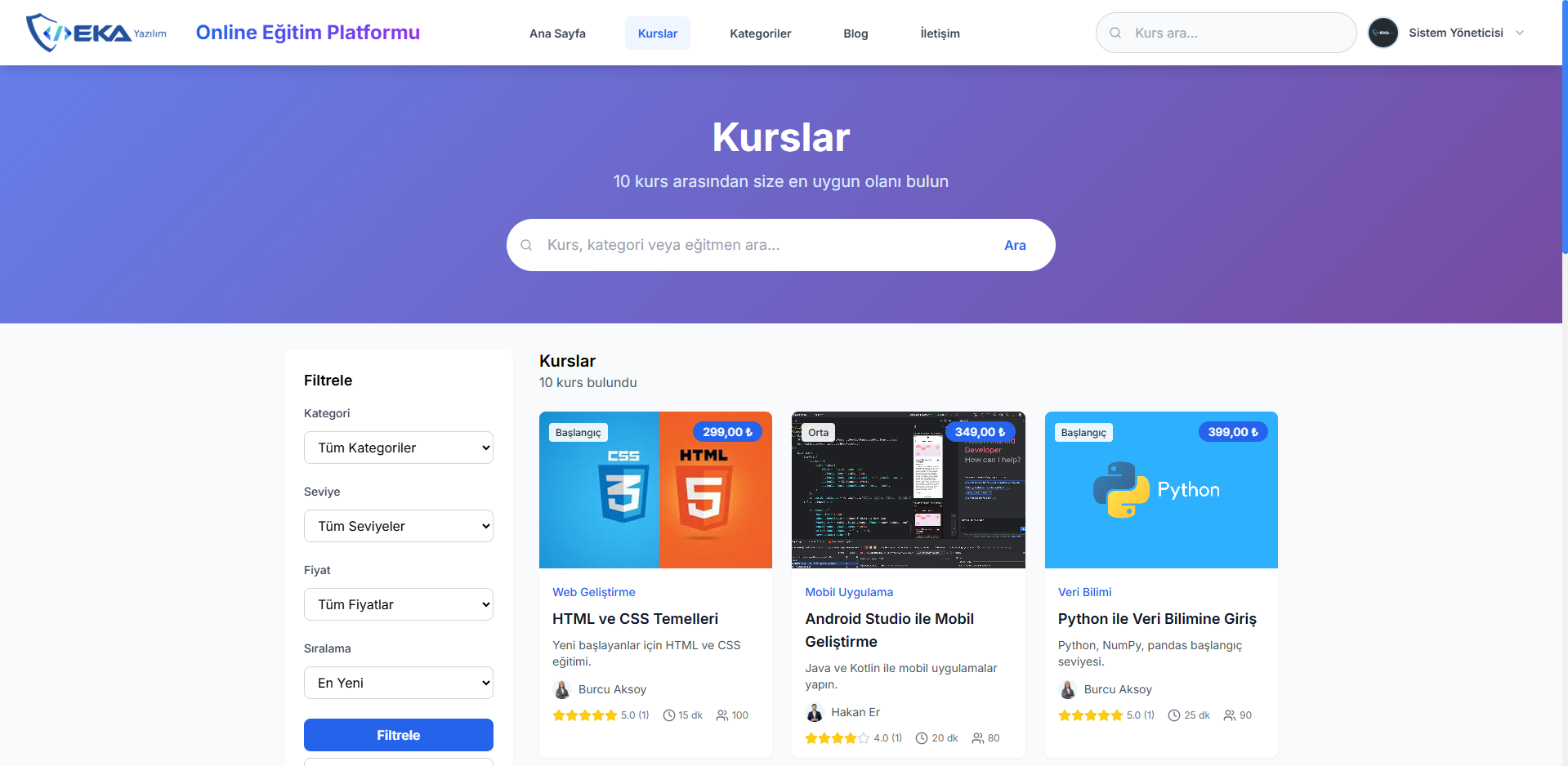 Online Eğitim Platformu Tanıtımı | Devam Eden Yazılım Projemiz
