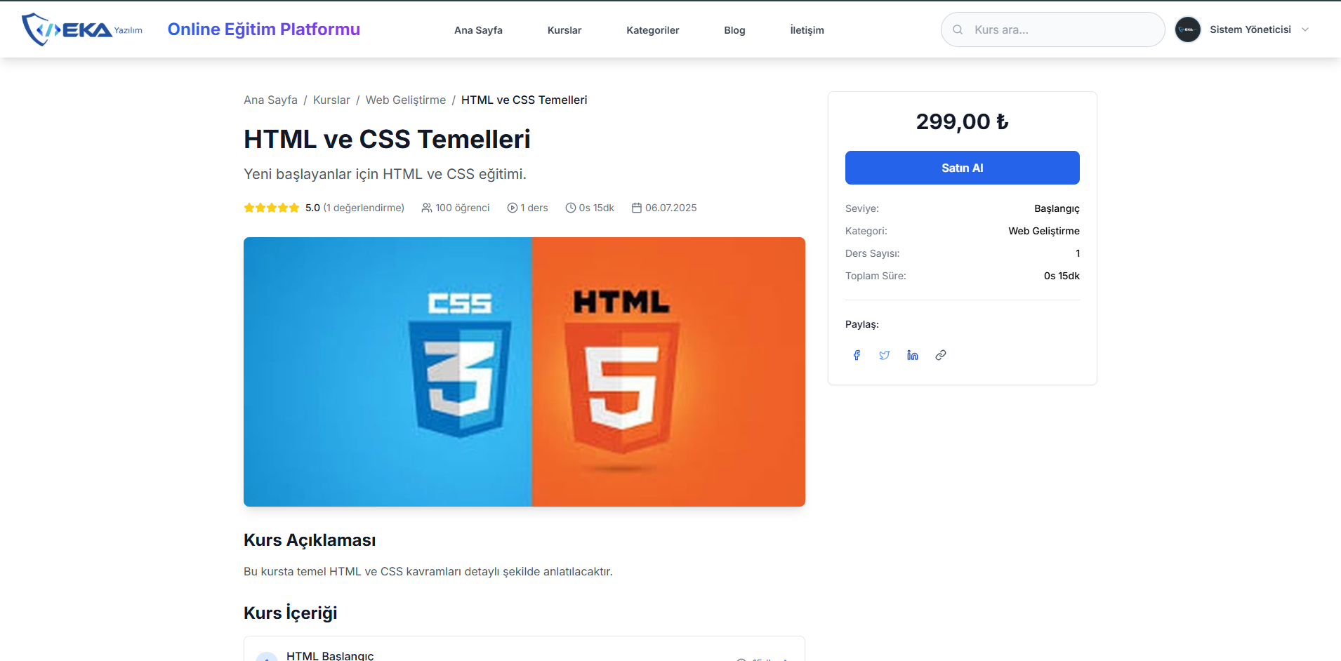 ✅ Ders oluşturma ve içerik yönetimi
