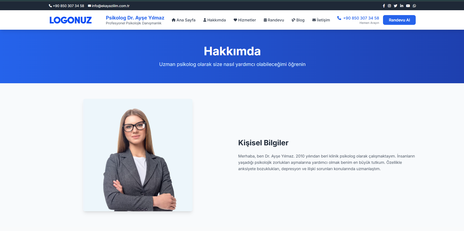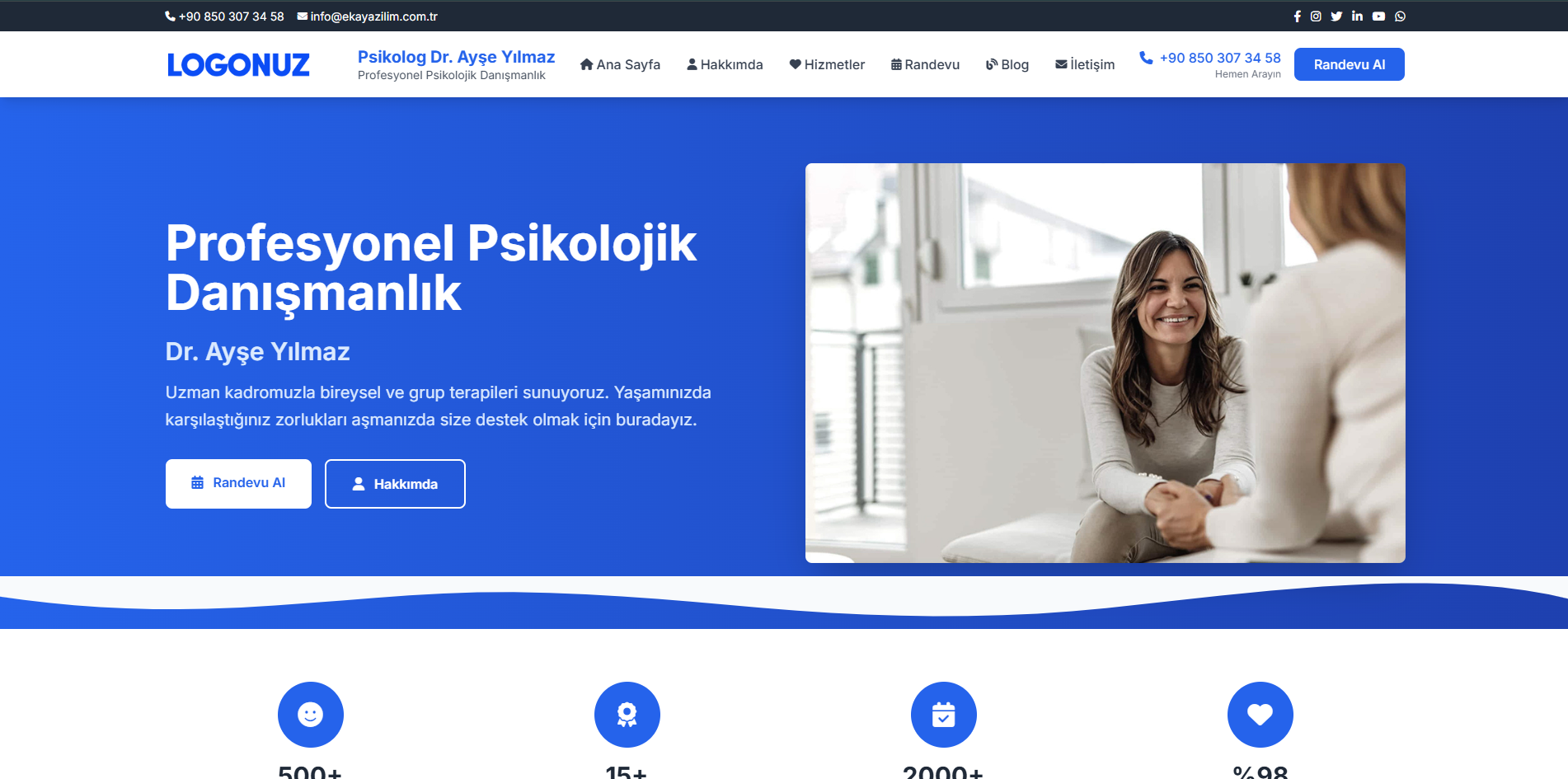 Web sitenizi profesyonel bir görünüme kavuşturun, randevu alın, içerik yönetin ve SEO performansınızı artırın!